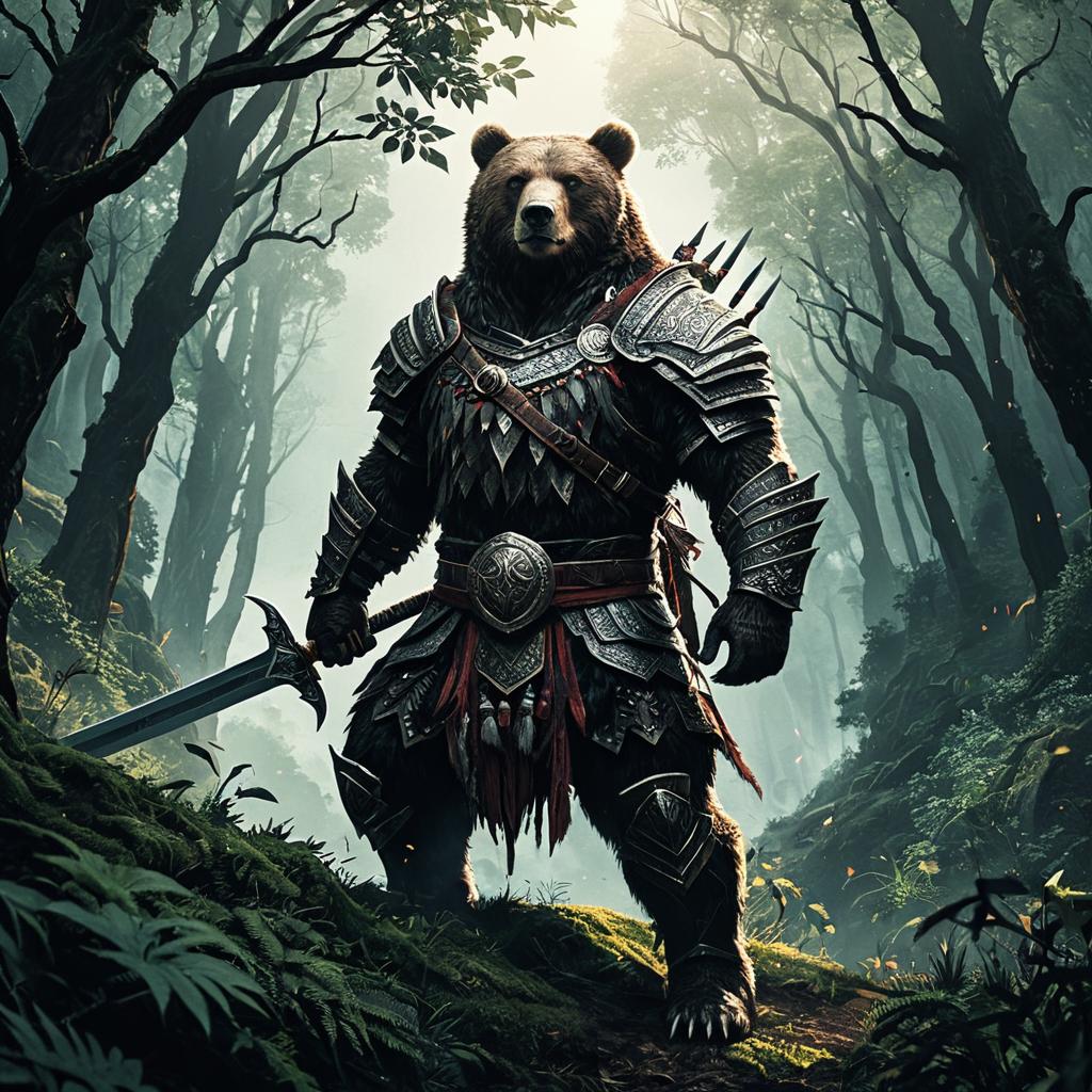Dark Metal Samurai Bear in Clearing