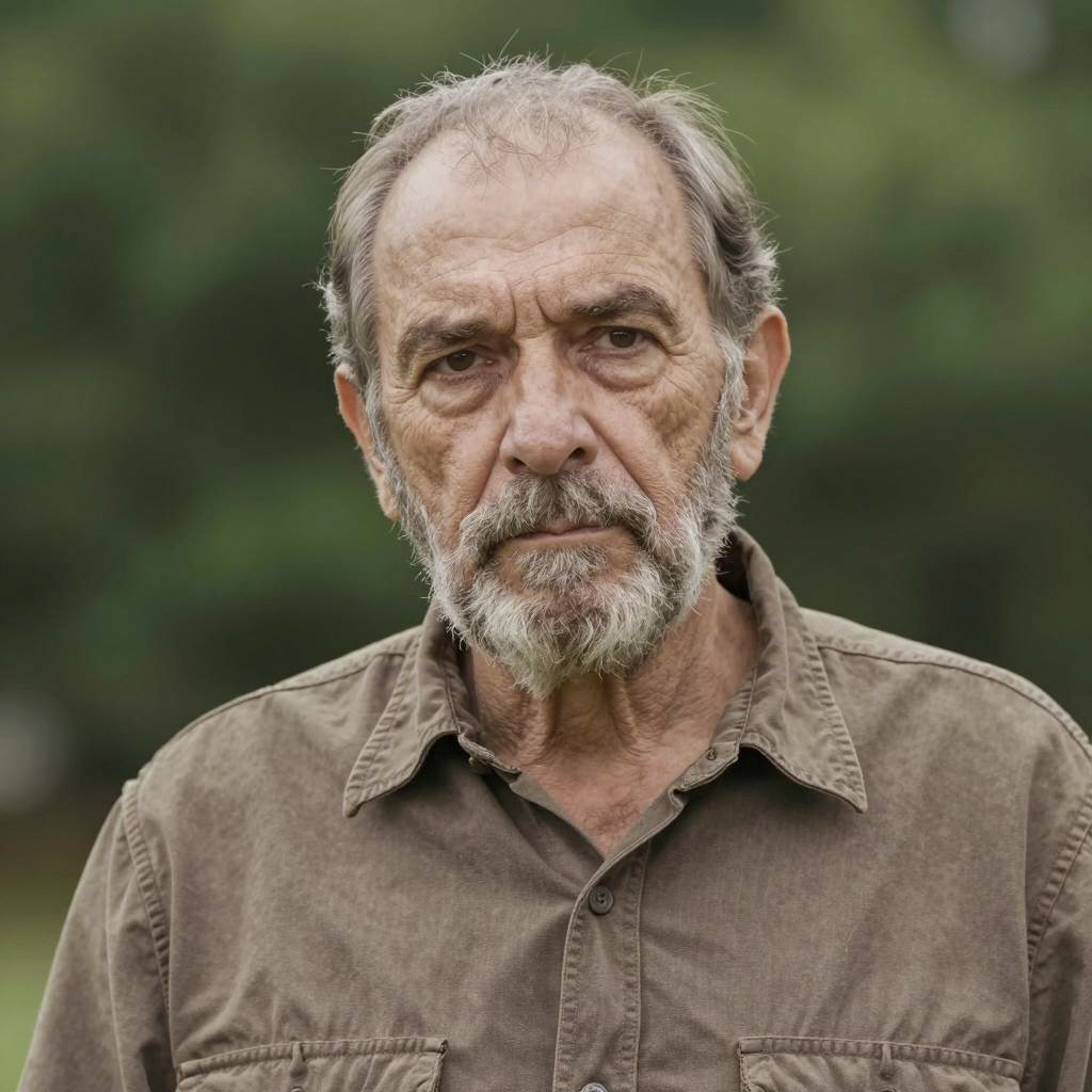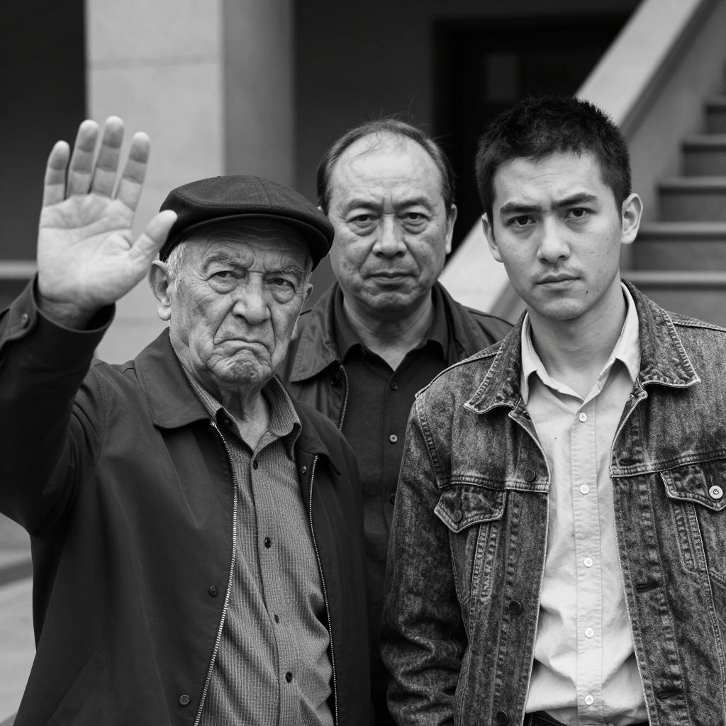 Old Man Standing in Dark Doorway with Silhouetted Figure