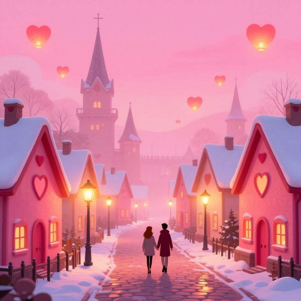French little boys kiss on a cobblestone street at dusk, soft glowing lanterns, vintage Parisian backdrop, watercolor style, tender and innocent moment captured.