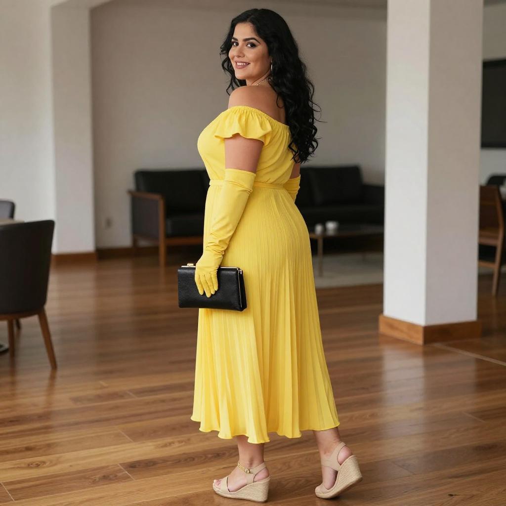 Curvy Woman on Balcony with Cocktail