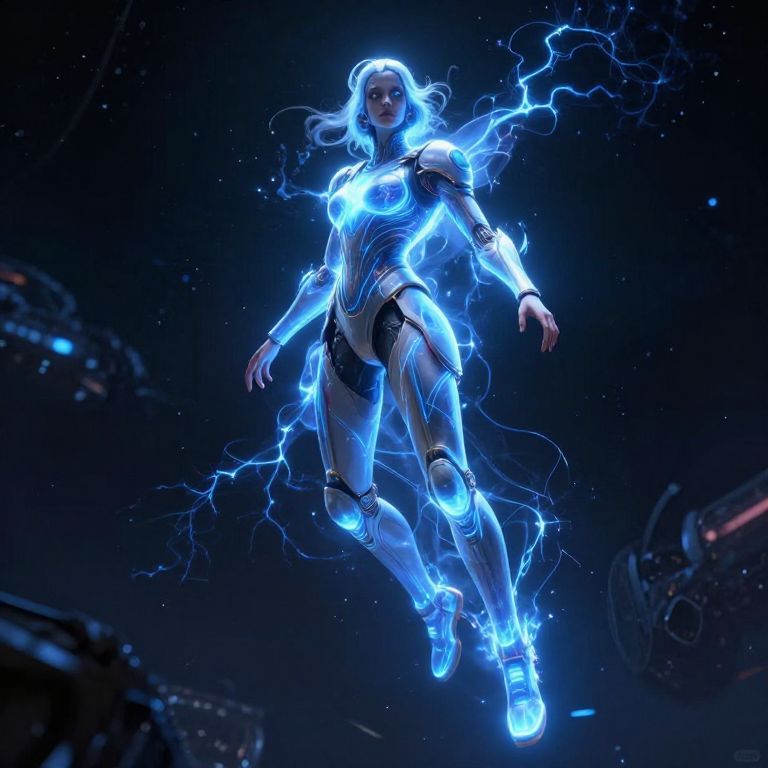 Tube Radio The Queen of Cyberspace floats in the cyber void. Crackling cyber energy surrounds her. Its beautiful. And a bit scary. Her boots glow with a bright blue power.,