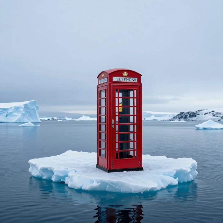 A lonely telephone booth sits on a floating iceberg, ringing mysteriously to connect dreamers across dimensions via subconscious conversation.
