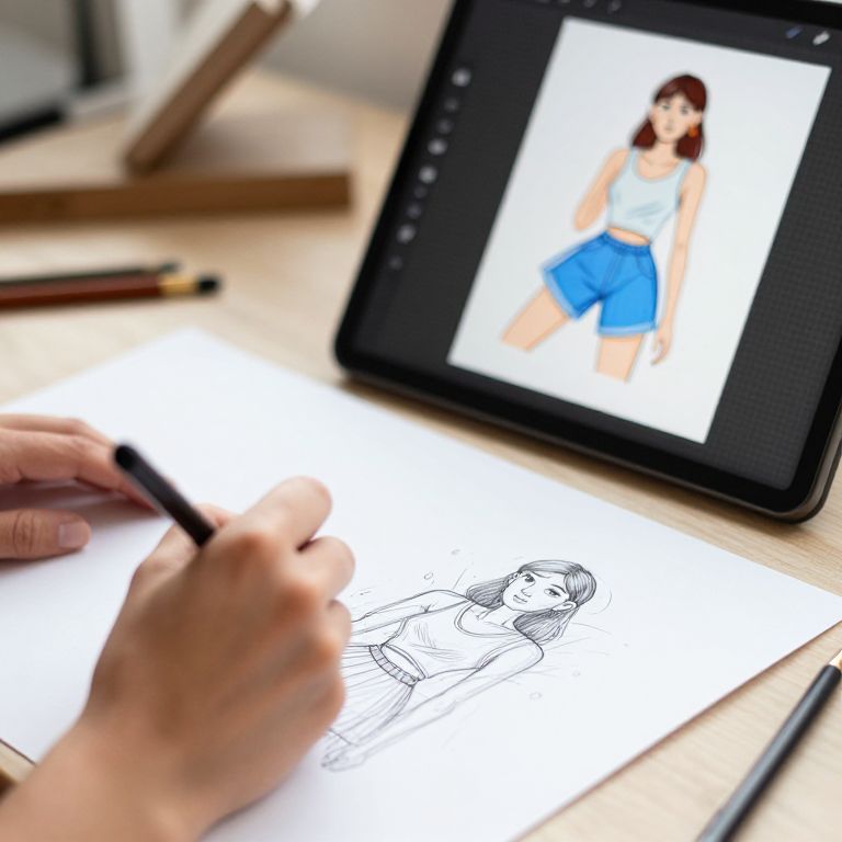 How to stylize art demonstration, close-up views of an artist’s hand sketching and then digitally enhancing illustrations with unique stylized features such as exaggerated proportions and dynamic lines, bright studio lighting with an inspiring creative vibe