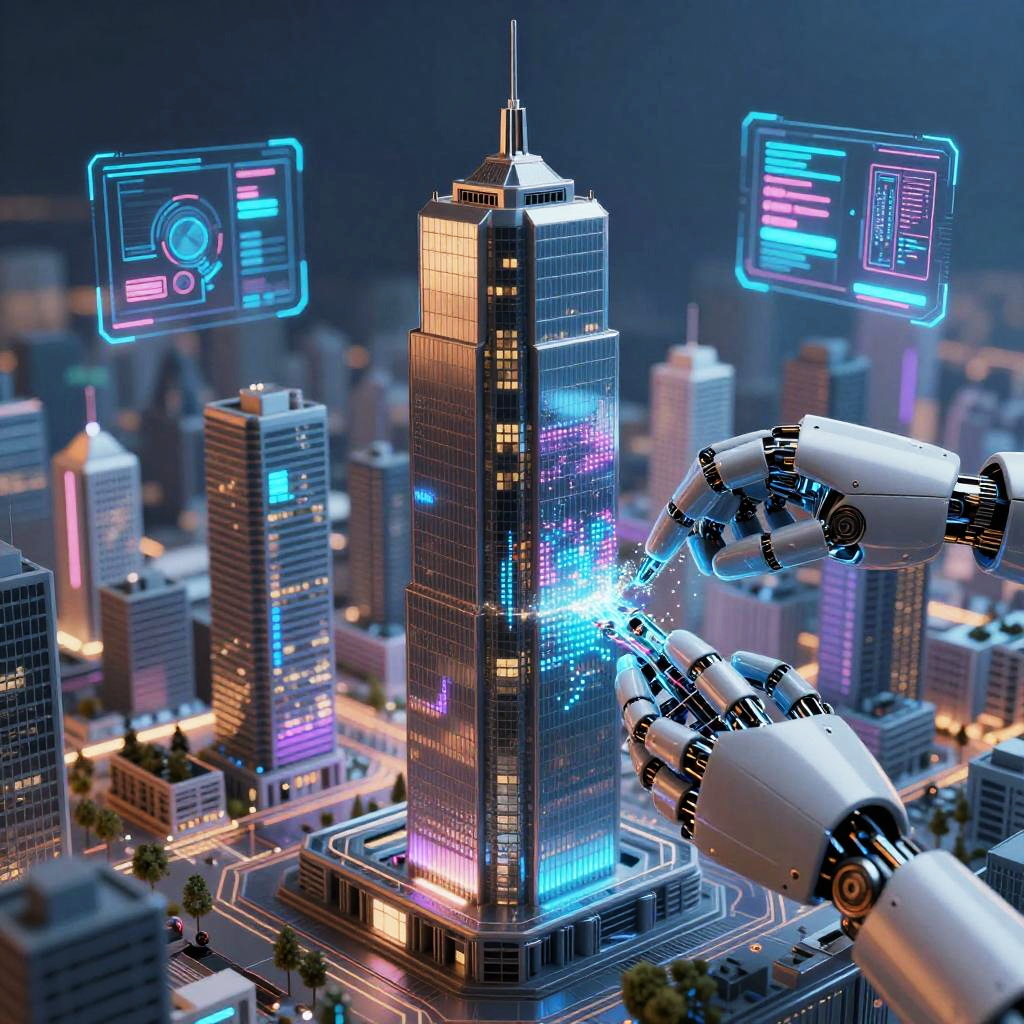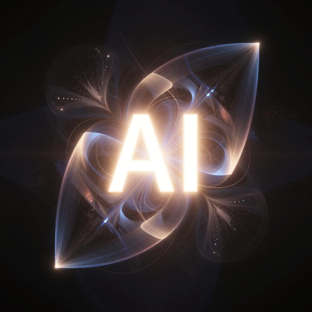 Ethereal AI Glyph Over Futuristic City