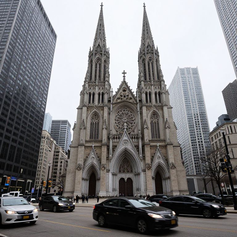 Cars Passing Holy Name Cathedral Chicago