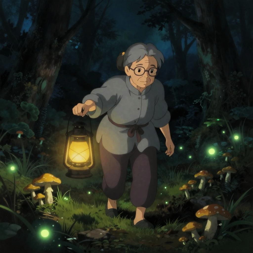 An elderly shaman with a wolf headdress wanders through a glowing crystal cavern under bioluminescent fungi, cinematic a blend of Gustav Klimt & James Gurney with Wes Anderson symmetrical framing, epic fine-art painting, surreal atmosphere, dynamic lighting, scattered yellow mushrooms.