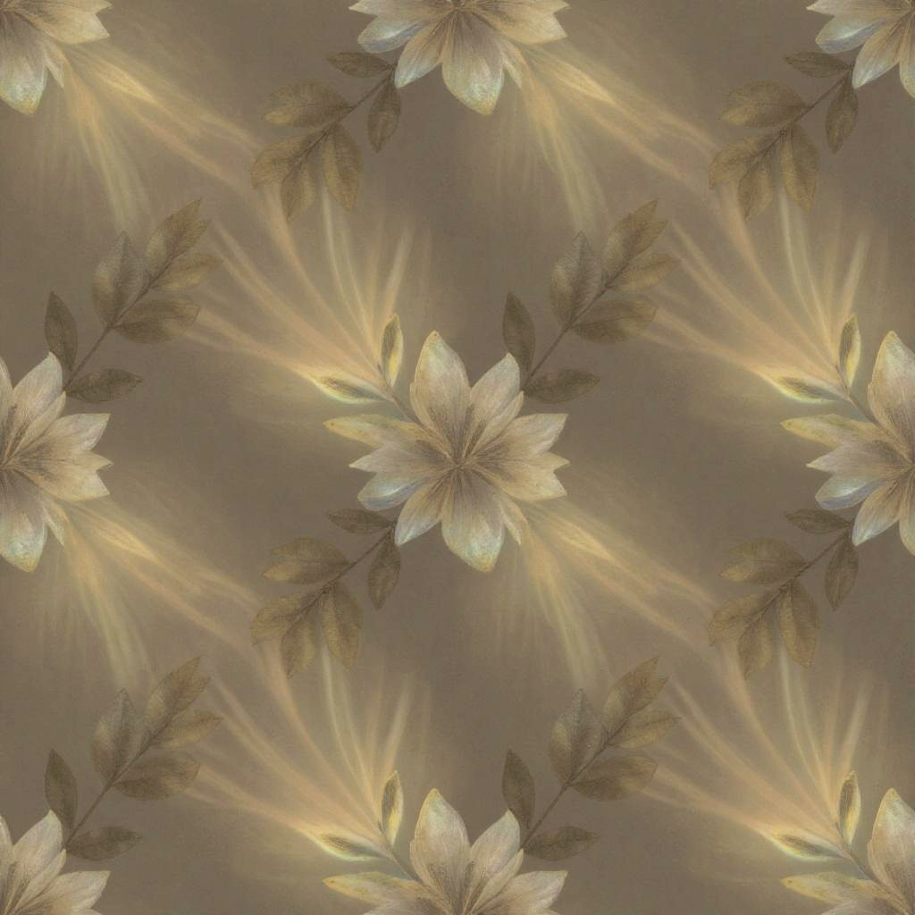 Stable diffusion seamless texture, natural elements combined with digital abstraction, seamless pattern of leaves, flowers and soft light flows, warm earthy colors mixed with subtle neon accents, high definition artistic texture for backgrounds.