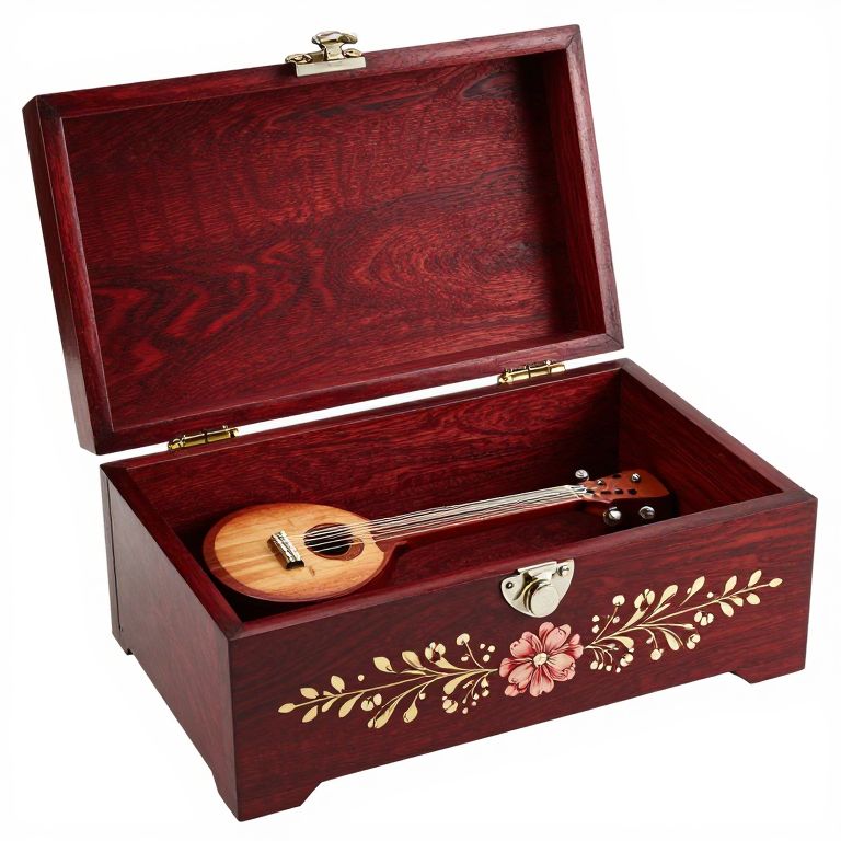 Gorgeous Red Wine Instrument and Floral Wood Inlay 36 Note Musical Jewelry Box Huge Sale - Many Songs to Choose - Music of The Night