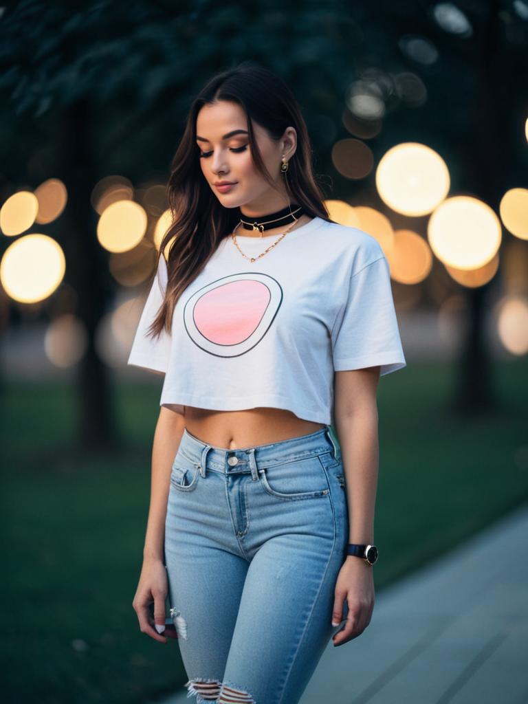 Woman in Cropped Graphic T-Shirt and Distressed Jeans