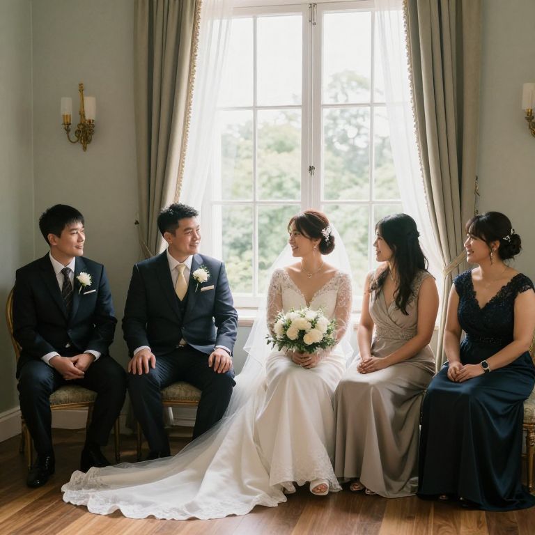 Wedding Party Relaxing by Window