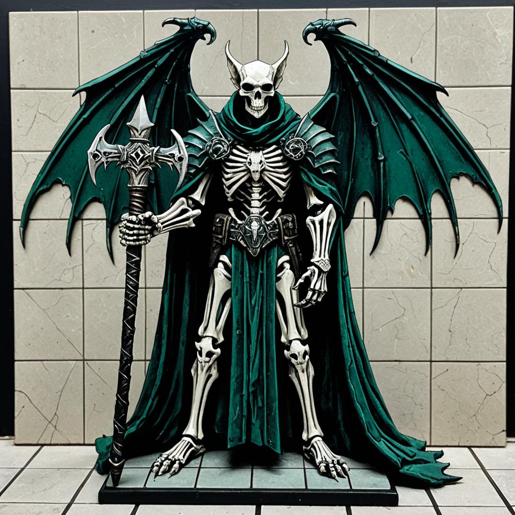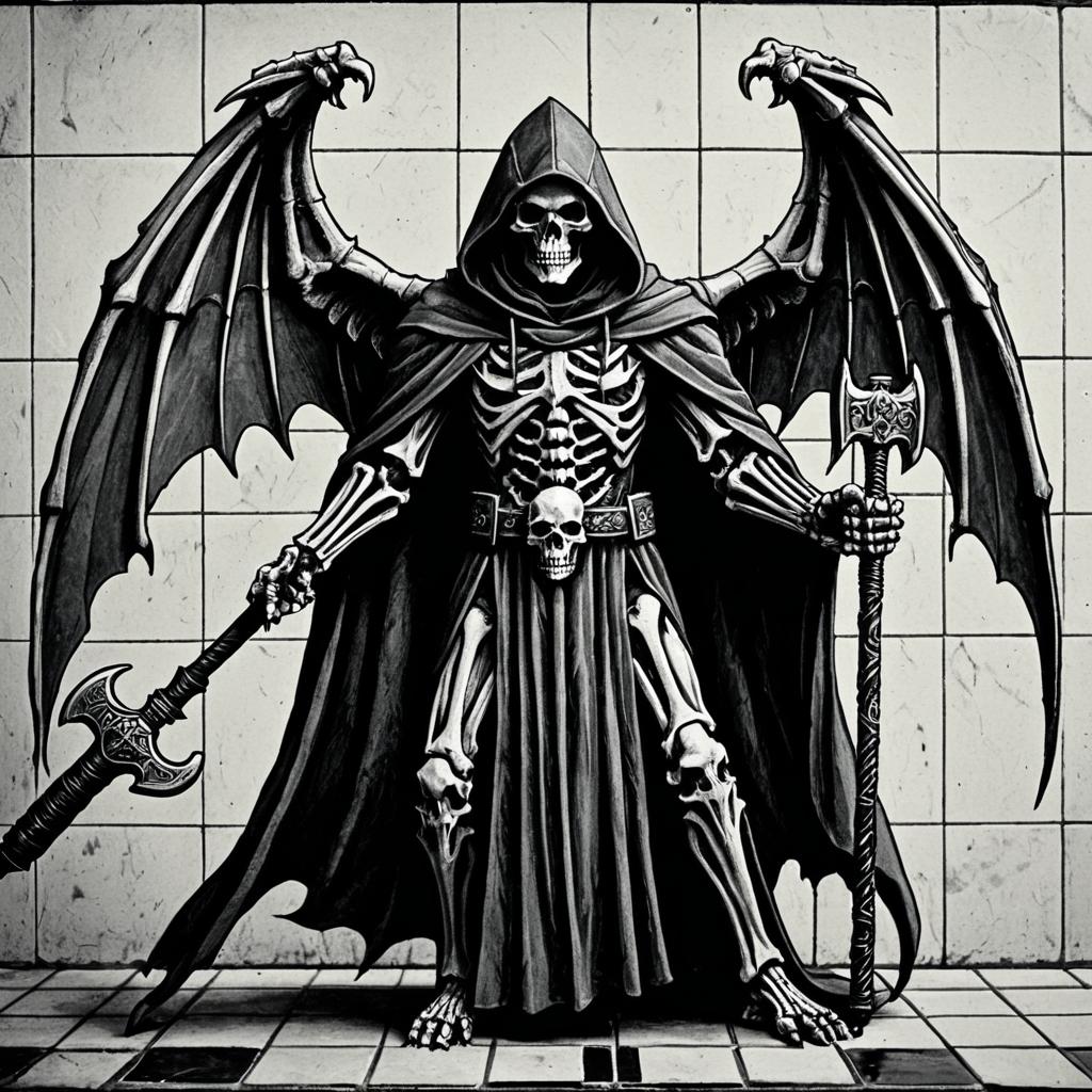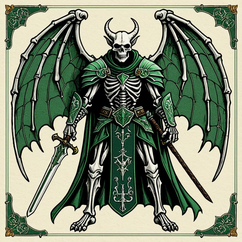 Tile a skeletal dragon with wings in a tattered black robe holding a flaming sword, outline, Halloween art, just the figure, full body, realistic detail on hands holding the sword.