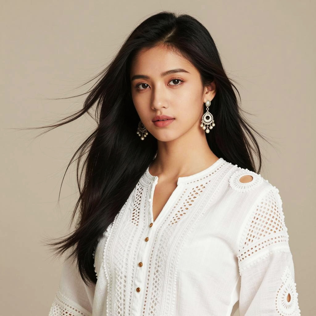 Costume Green Tops, woman with green hair and green eyes wearing a green top