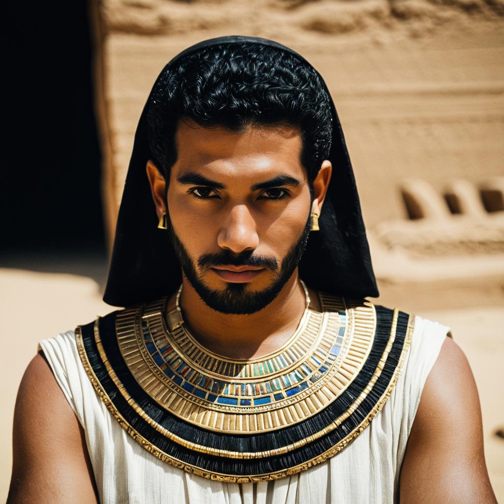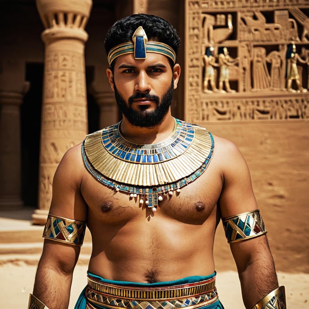Egyptian sun god,solo, 1boy, male focus, egyptian, egyptian clothes, jewelry, looking at viewer, upper body, nipples, brown eyes, topless male
