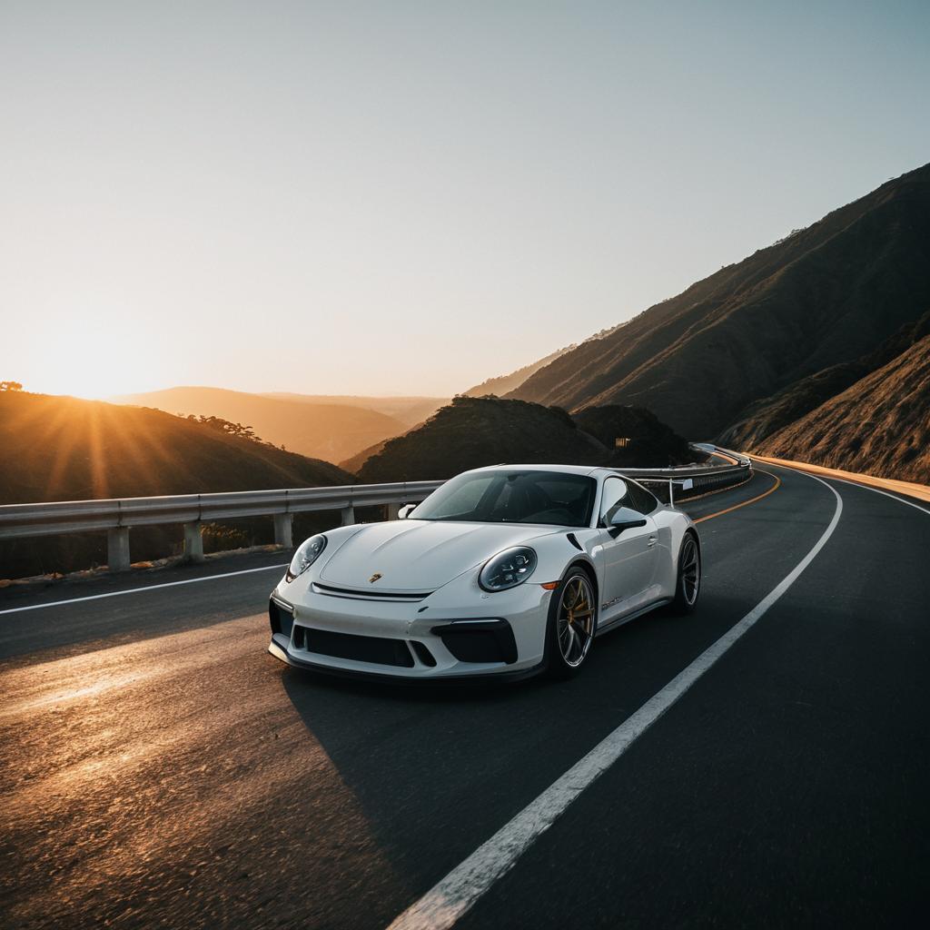 2019 Porsche GT3 on California Highway 1 at Sunrise