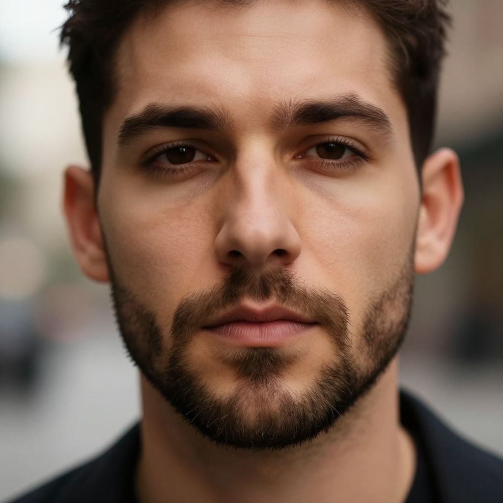 Textured Pompadour, fit European man, realistic photography, natural lighting, urban setting, stylish clothing, detailed hair texture, professional portrait, 45 years old, high contrast, cinematic look