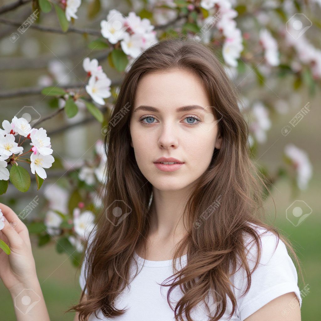 Free Woman By Flowers On Tree Royalty Free Stock Photography - 9389057