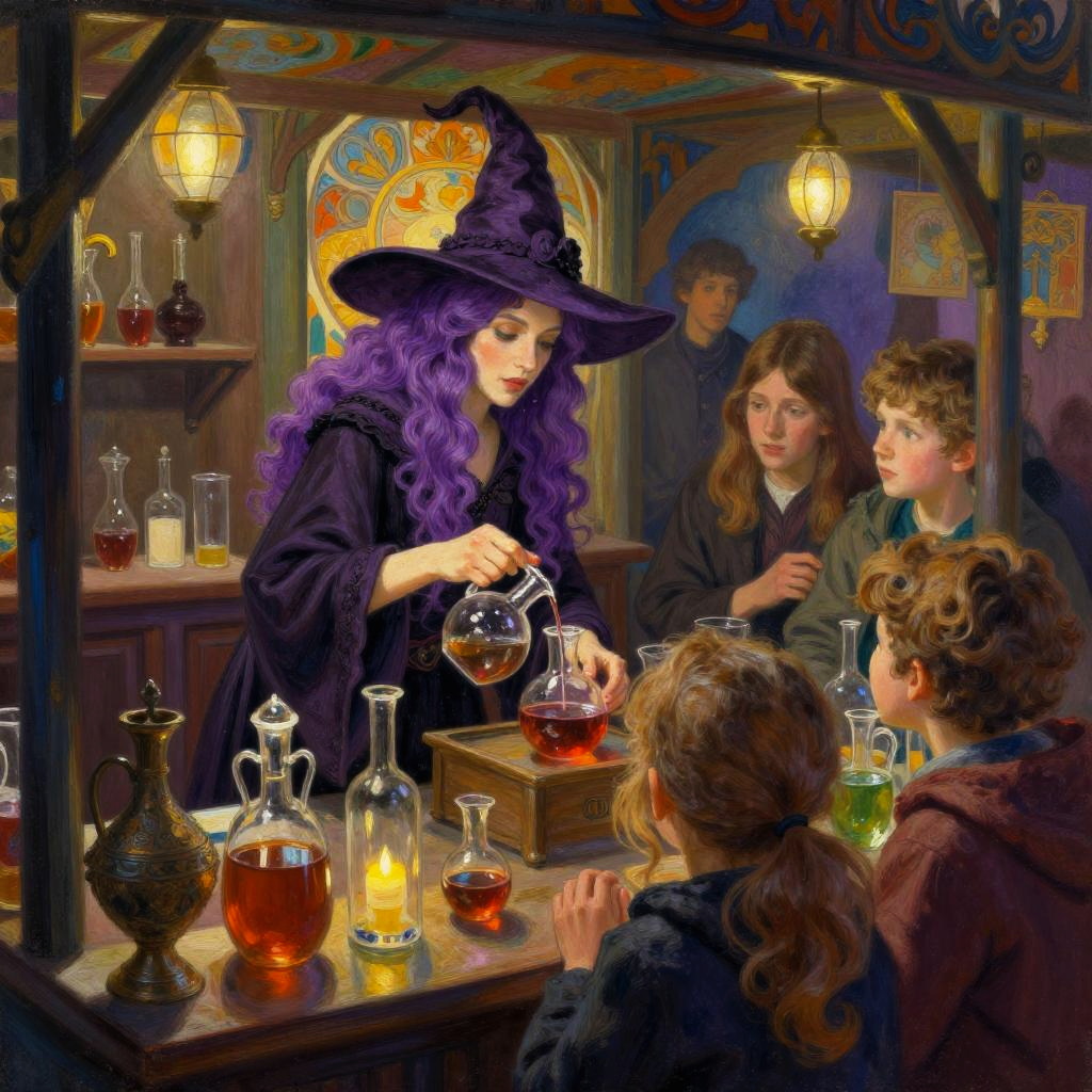 Realistic Witch Brewing Potions Painting