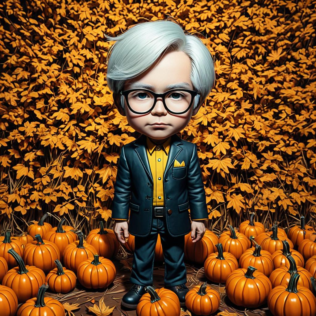 Chibi Andy Warhol with Pumpkins in Fall Setting