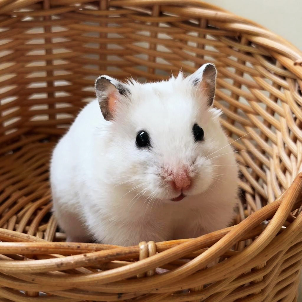 Close-Up of Fluffy White Hamster