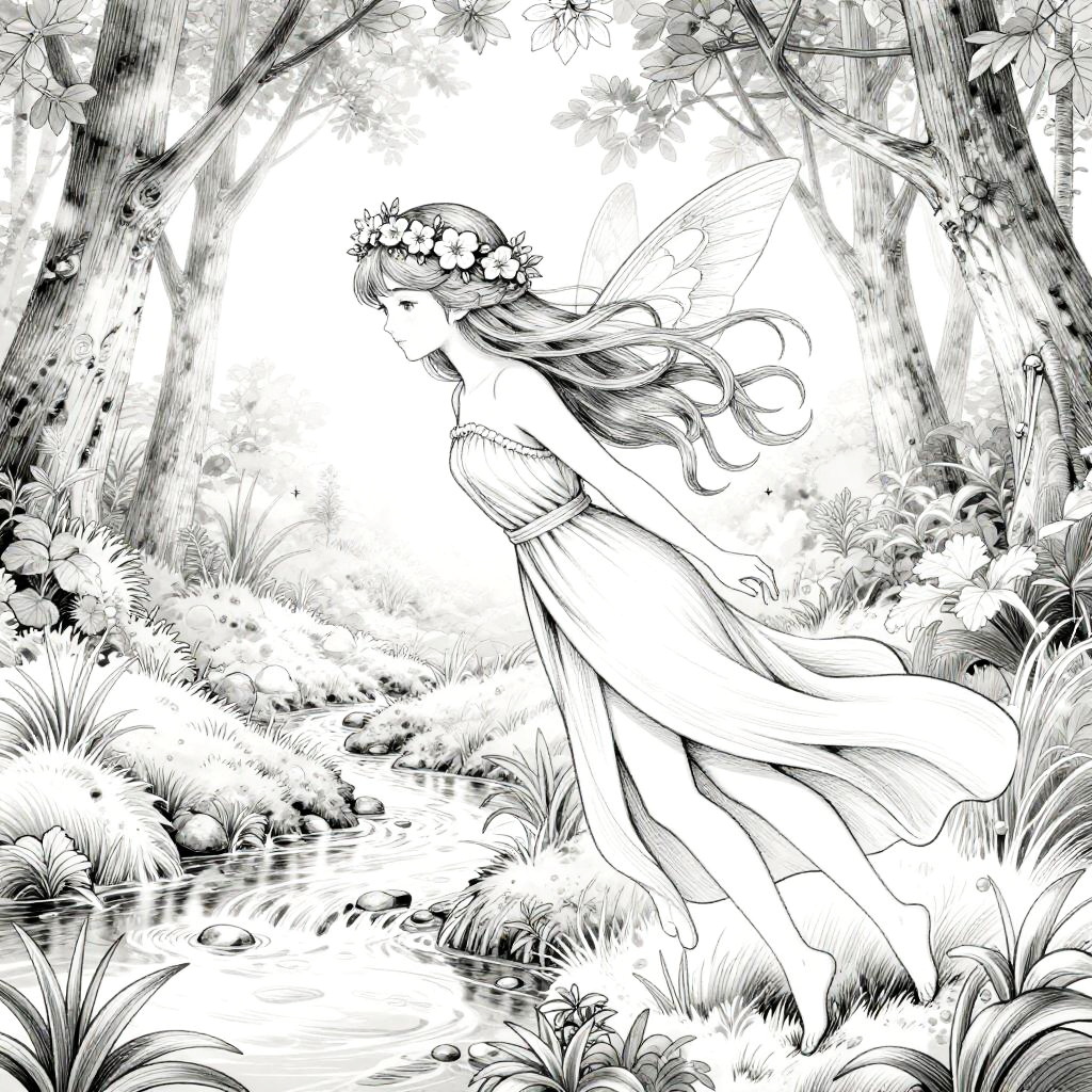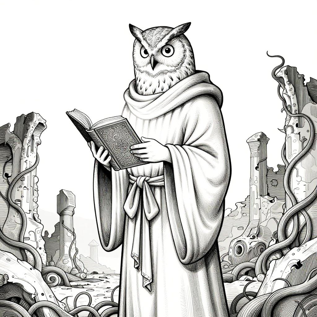 Whimsical Wizard Line Art Illustration