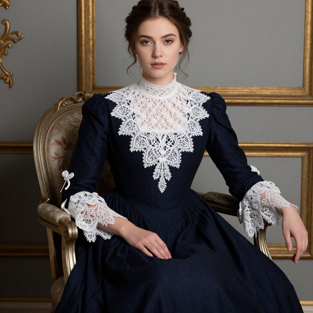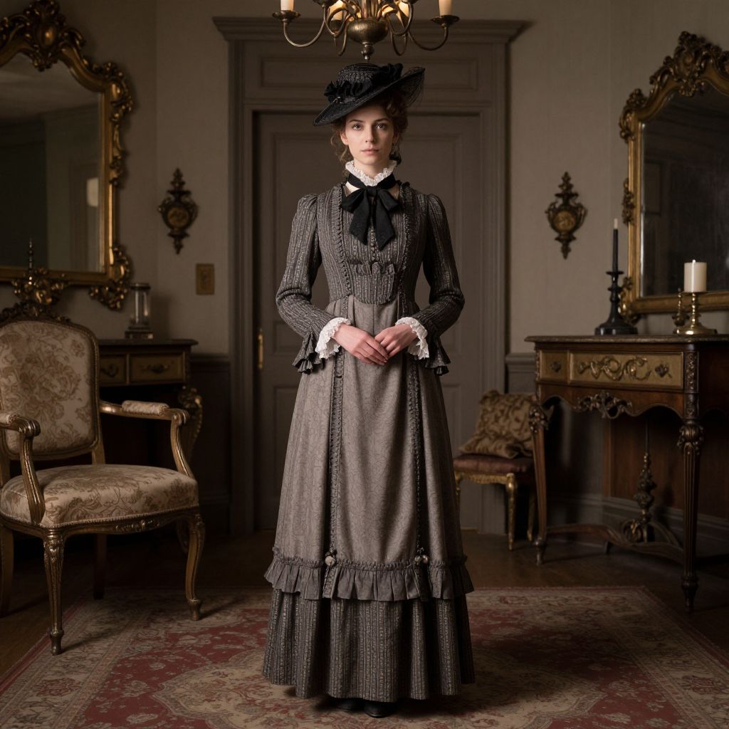 Plus size victorian costume, 1girl, solo, dress, hat, twin braids, realistic, brown hair, painting (object), standing, indoors, braid, full body, long sleeves