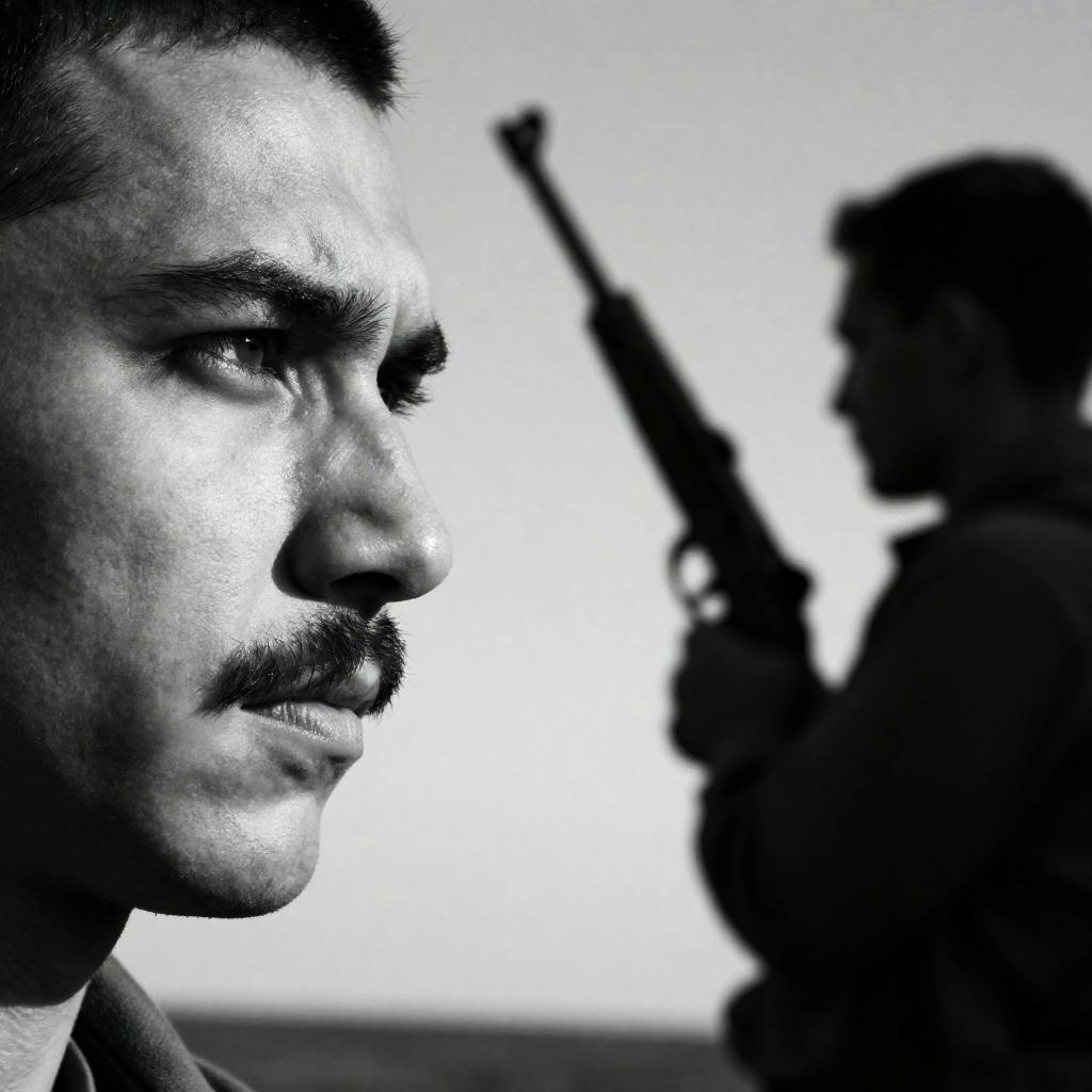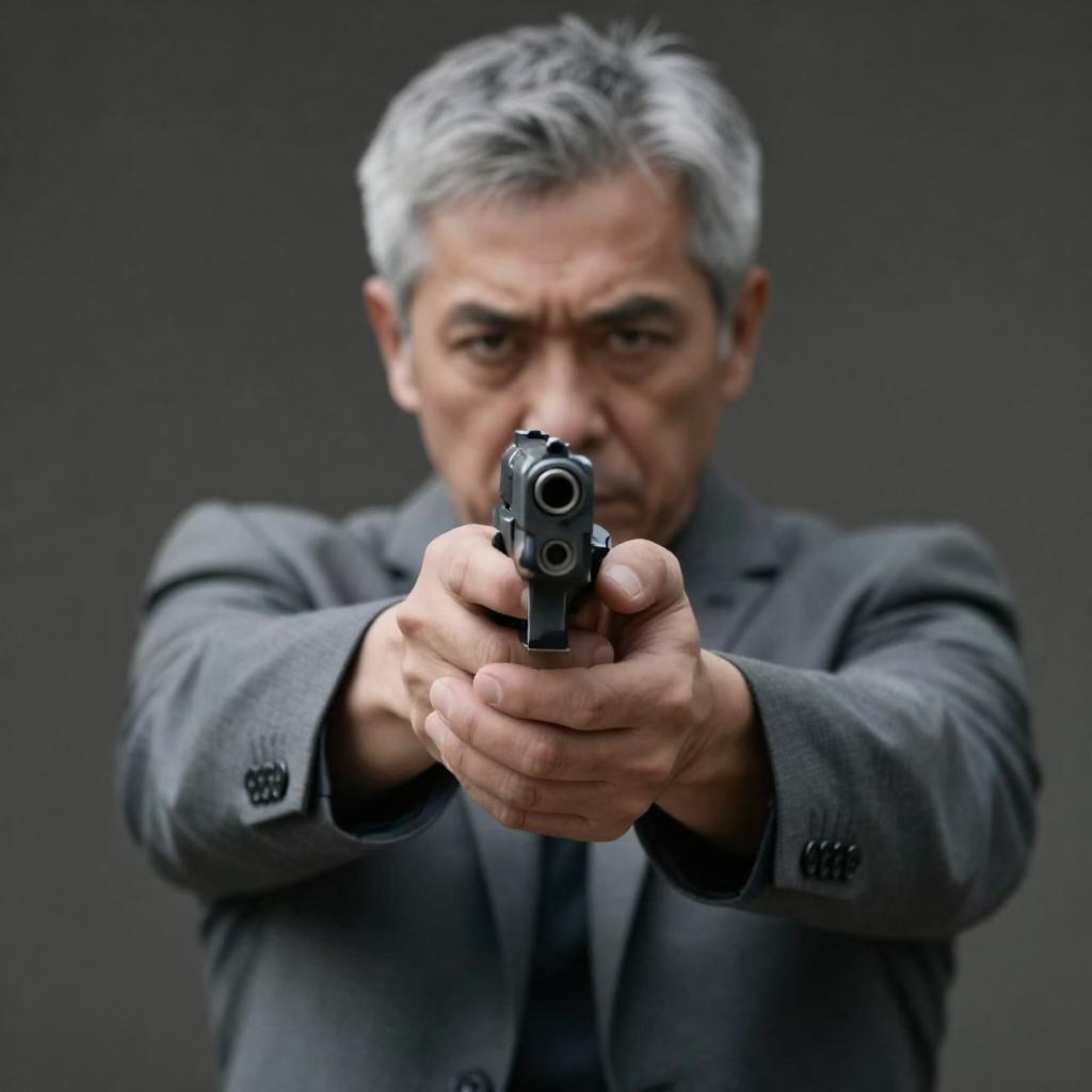 Dramatic Silhouette with Gun in Indoor Scene