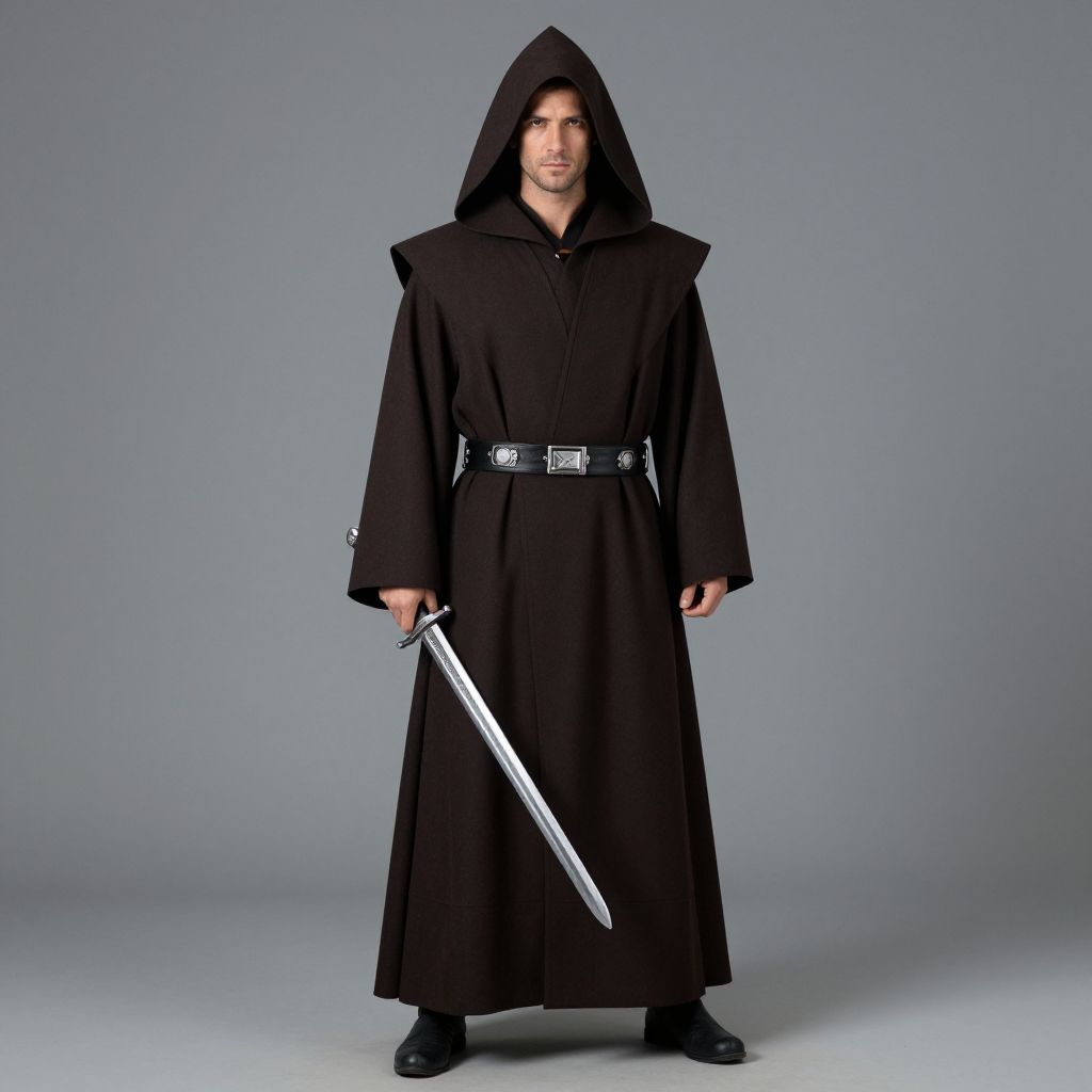 Jedi Fallen Order Costume, man in a robe and hood with a sword