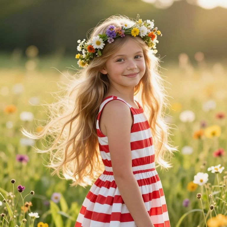 Cheerful Girl in Whimsical Meadow