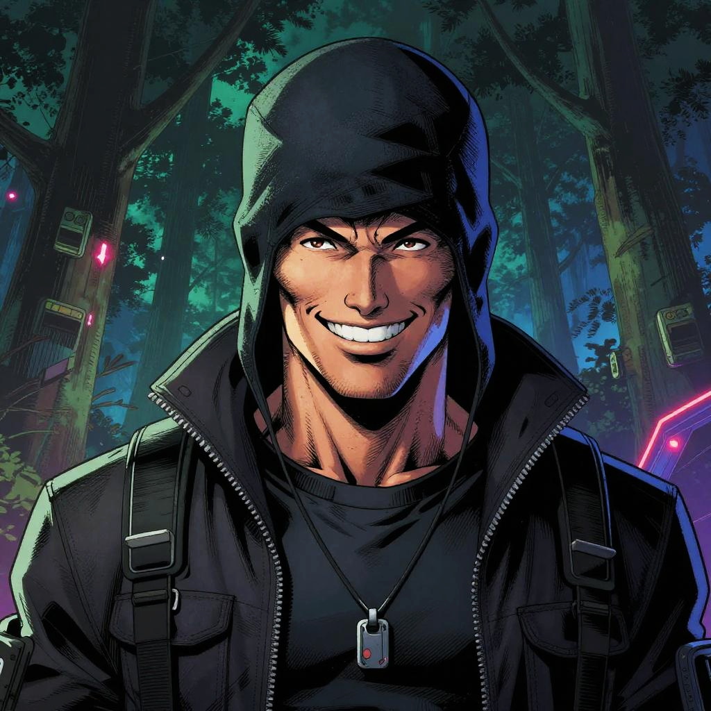 Comic artwork of galactic diplomat, portrait, smiling, happy, neon cityscape background, bright alien sunrise, crosshatching, 2D, Sharp, Detailed, HD, HDR, High Quality, High Resolution, Masterpiece