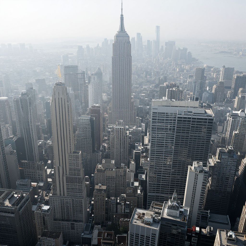 In a hazy, endless expanse of towering skyscrapers, the weight of collective ambition presses down, suffusing the air with a palpable tension that whispers of human aspiration and the relentless pursuit of infinity.