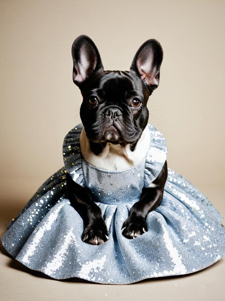 Close-up of an African Grey Parrot dressed in a royal blue velvet robe adorned with sparkling rhinestones, set against a neutral background. The parrot's detailed grey feathers and vivid orange eye stand out prominently.