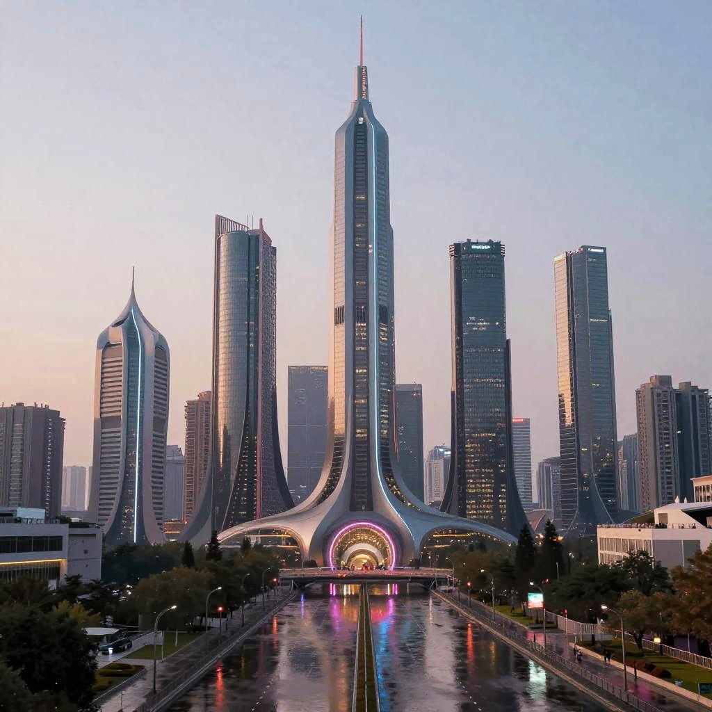 Kosinski Futuristic Cityscape at Dusk