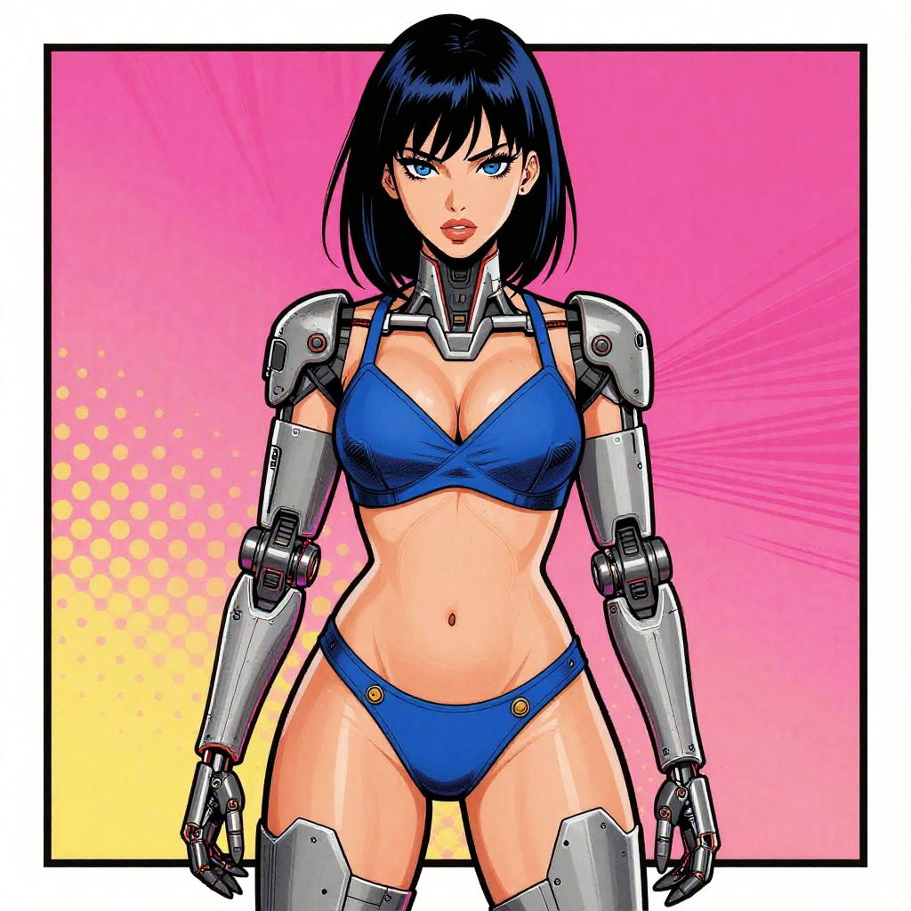 Woman illustration. Cartoon, erotic vibe. Fusion of styles Futurism style and Vaporwave style