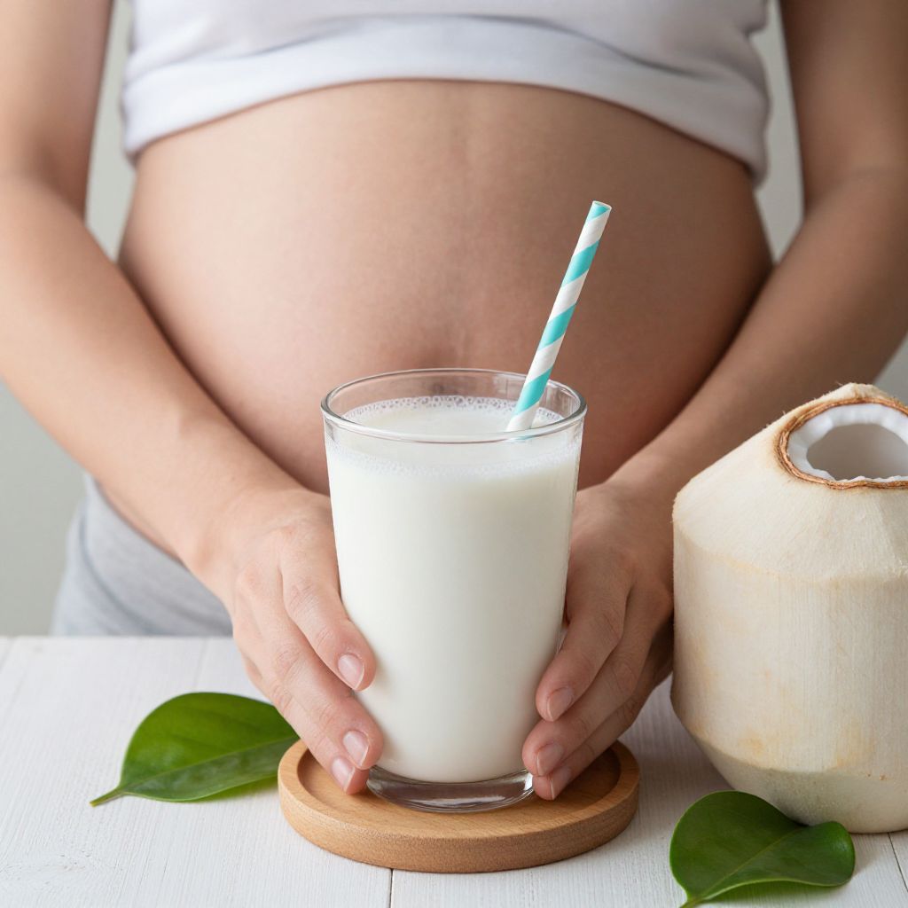 Pregnant Woman Enjoying Creamy Coconut Milk
