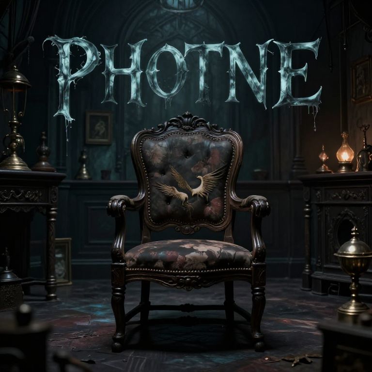 Body Text old chair , and trinkets, haunted manor interior , dark annient , canfle light ambient , 8K ultra high quality photo , real photo, dark freaky ambient , in phantom manor ambient,