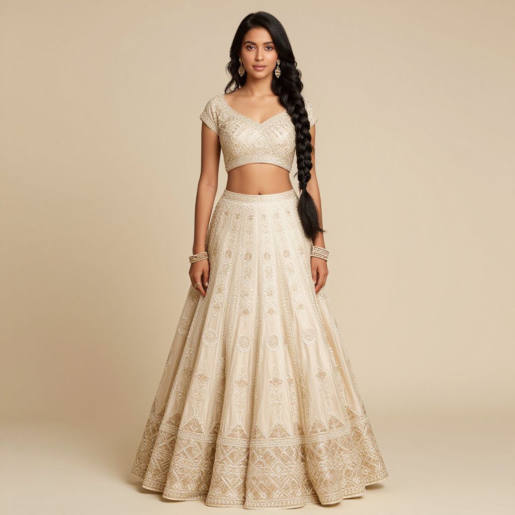 Elegant Champagne Lehenga with Jewelry