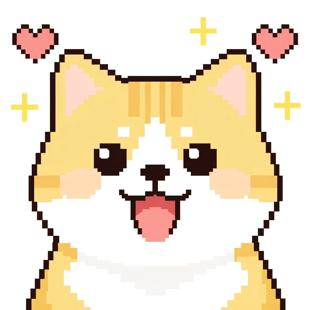 Smiling Pixel Art Cat Face
