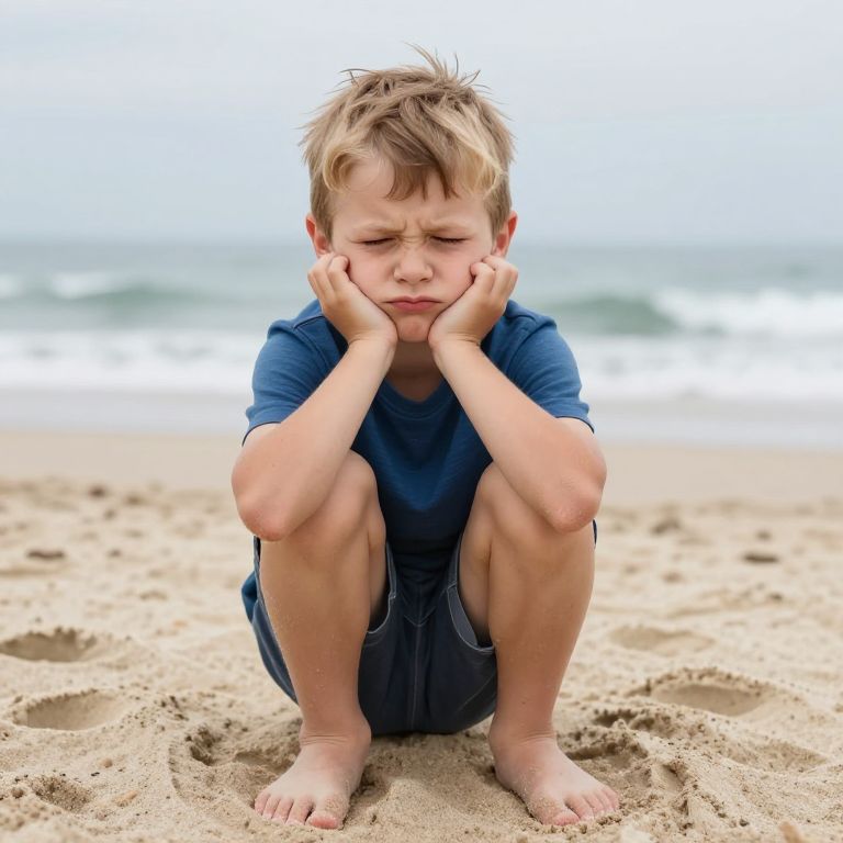 Bored Boy on Overcast Beach