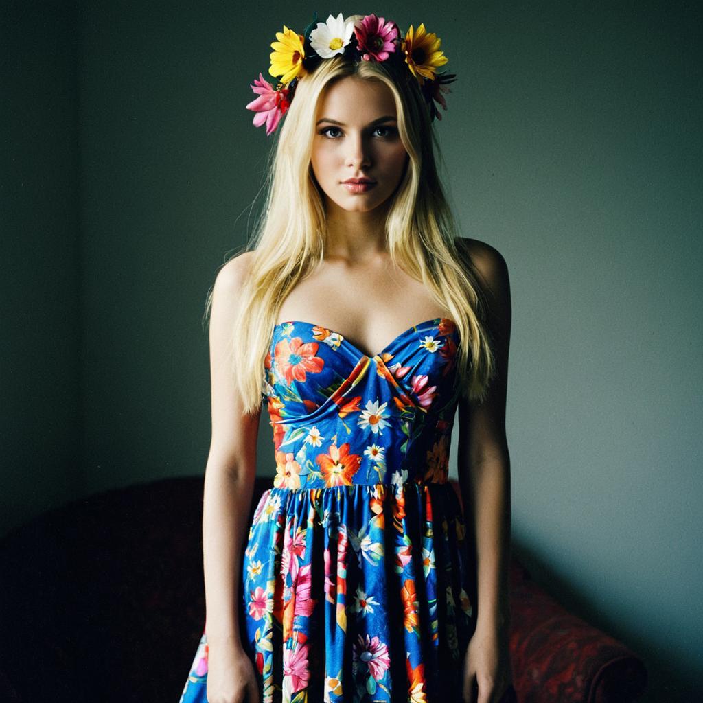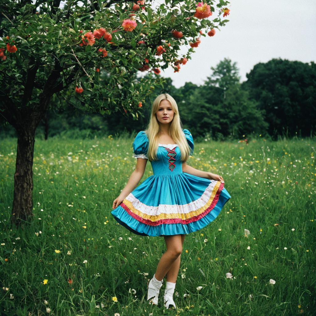 Blonde Woman in Pink Tea Party Dress Outdoors