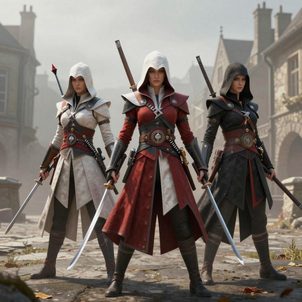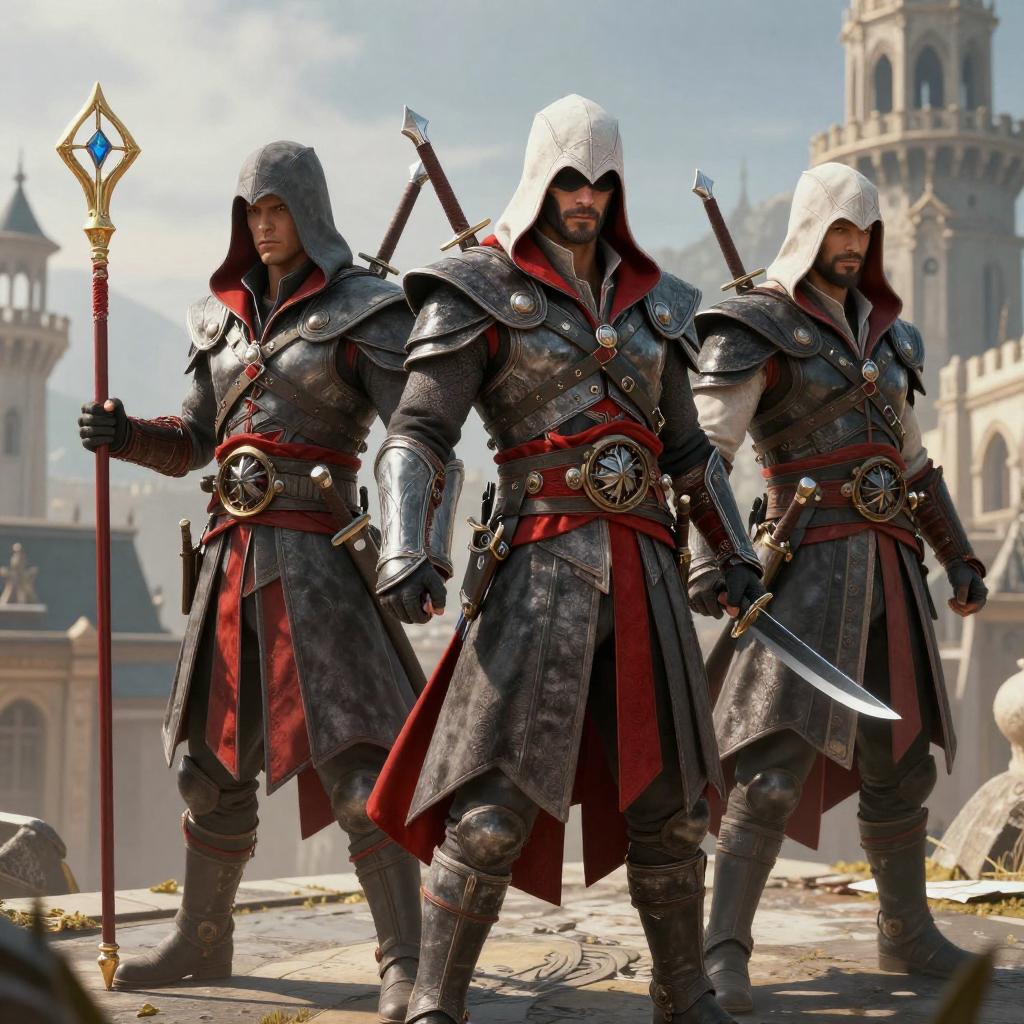 Assassin's Creed Cosplay Trio in Hooded Armor