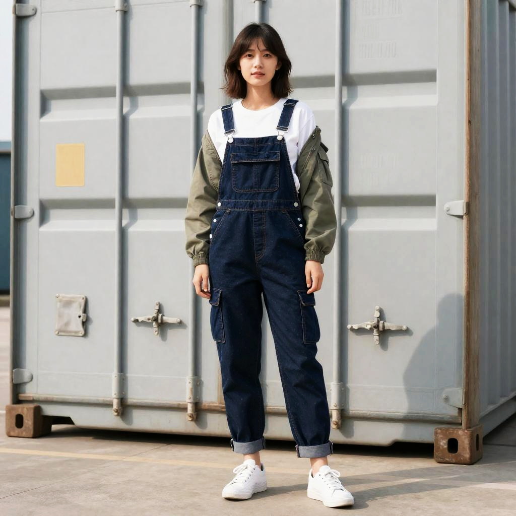 Cargo Style Woman in Overalls