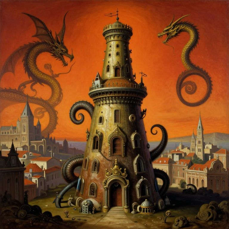 Steampunk Music abandoned russian village, buildings covered in gross skin, style of Stephen R. Bissette,