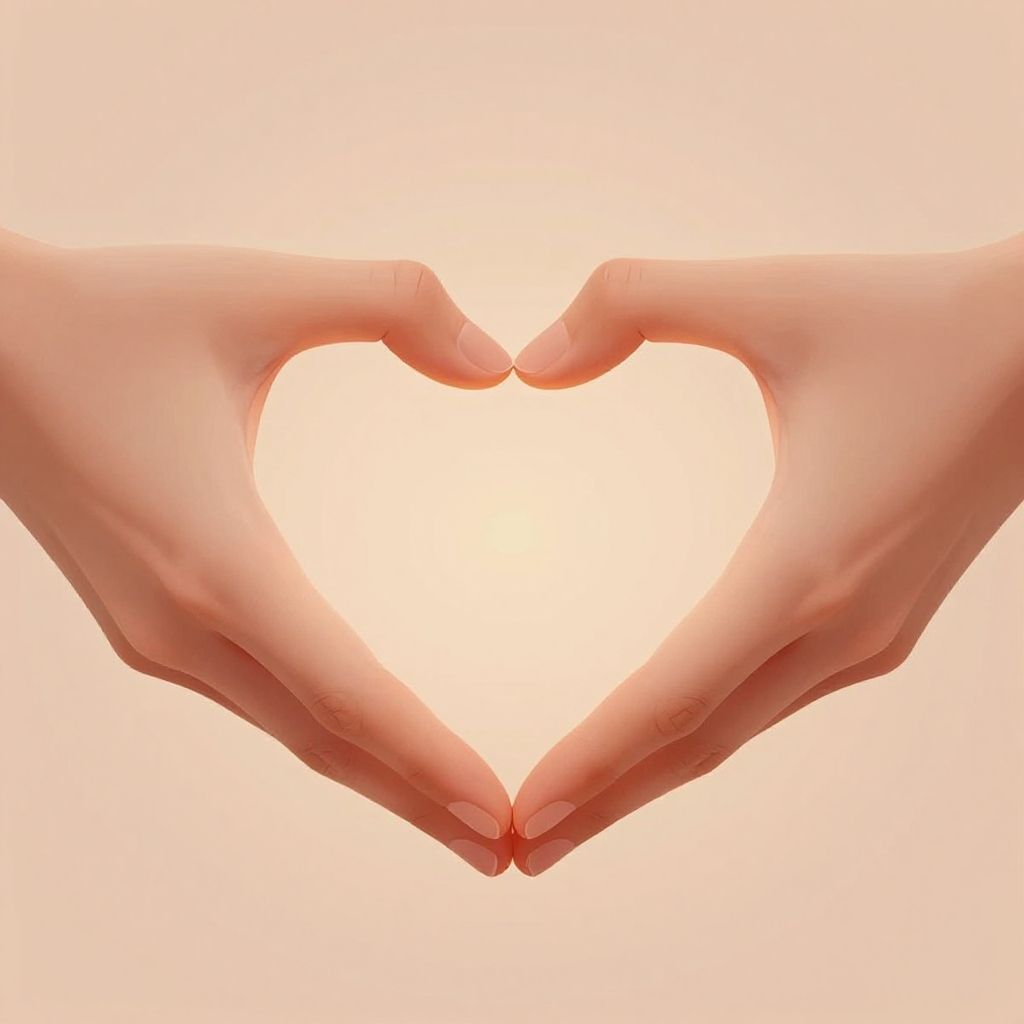 Symbol for self love, an abstract emblem of intertwined hands forming a heart shape, warm tones with subtle gradients, minimalist design, modern and calming aesthetic