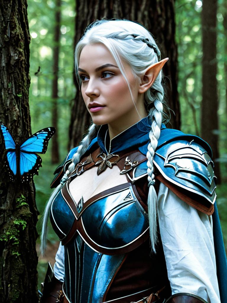 Blonde Elf Warrior in Armor Outdoors