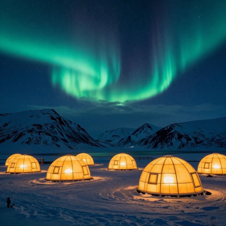 Glowing Igloos Under Northern Lights