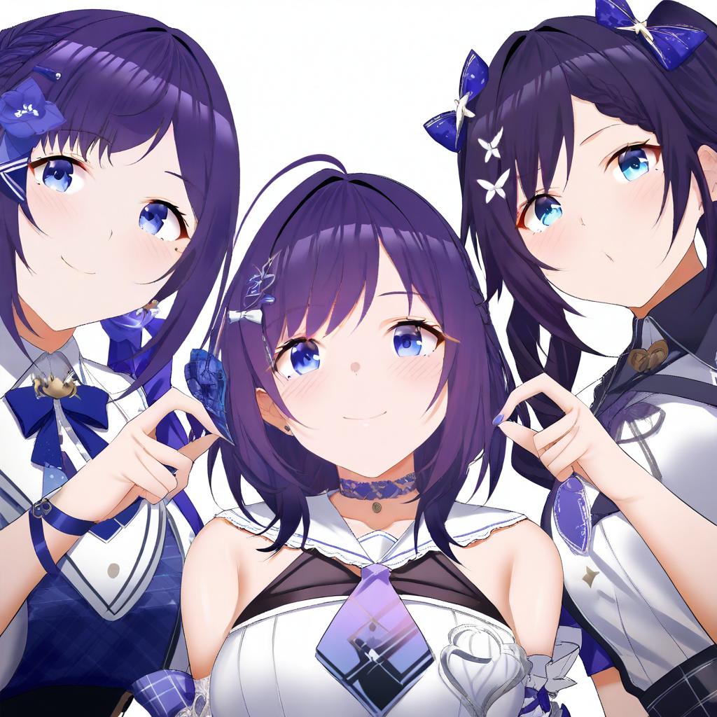 Aiba uiha, nijisanji, 1girl, blue eyes, mole under eye, black hair, long hair, purple hair, hair bow, blue bow, virtual youtuber, virtual youtuber, by artist arind yudha, animagine