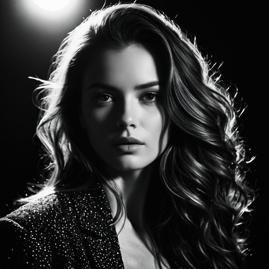 Portrait of a graceful dancer in a sensual, smooth pose, expressive face, intricate details with soft lighting. Inspired by Helmut Newton's editorial style, blurred background, shot on Sony Alpha, f/4, cinematic style