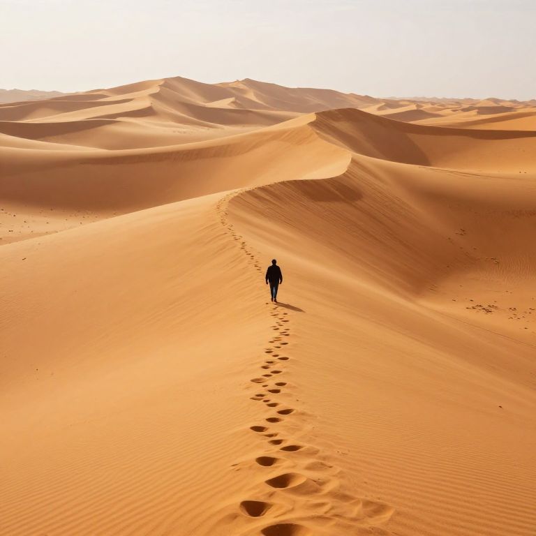 An endless expanse of shifting sands mirrors the travelers' journey, their footprints etched in vibrant hues that whisper tales of resilience, solitude, and the boundless pursuit of discovery.
