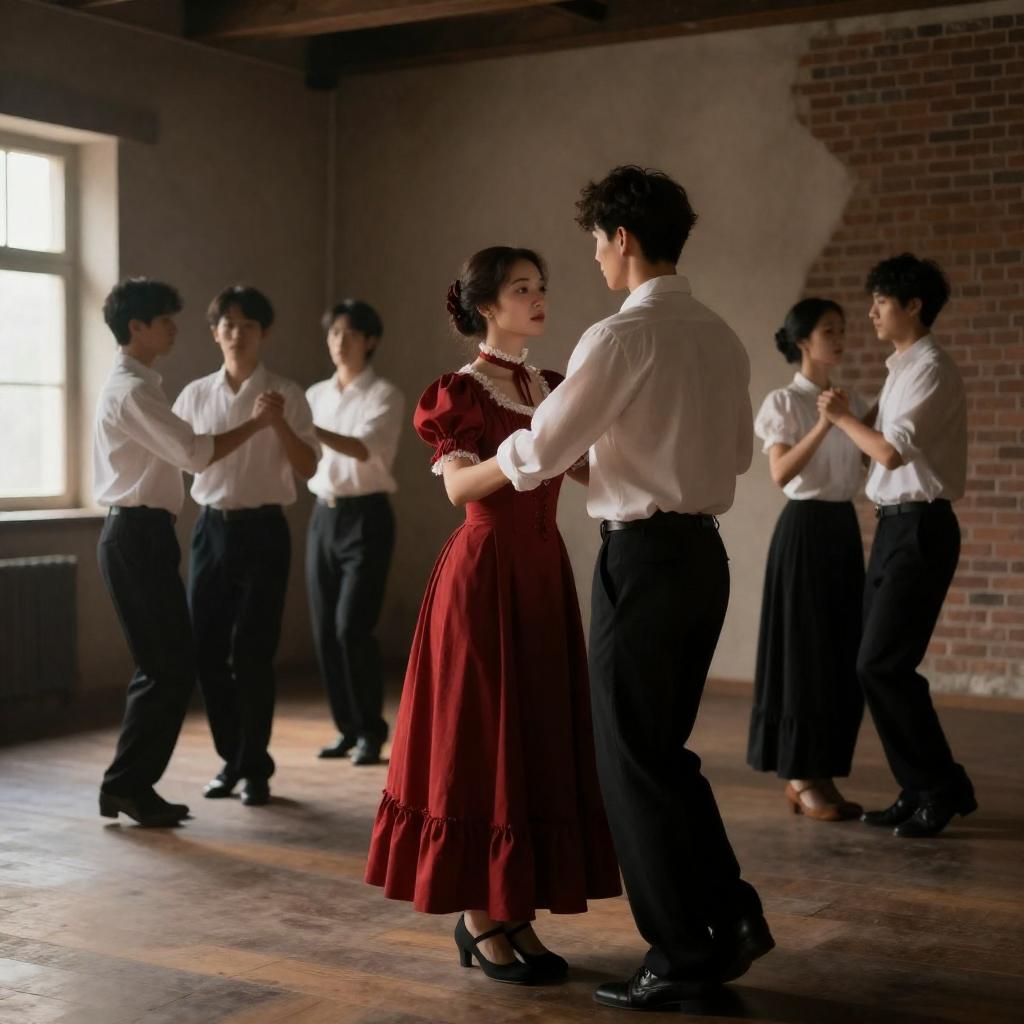 Victorian Dance in a Rustic Room