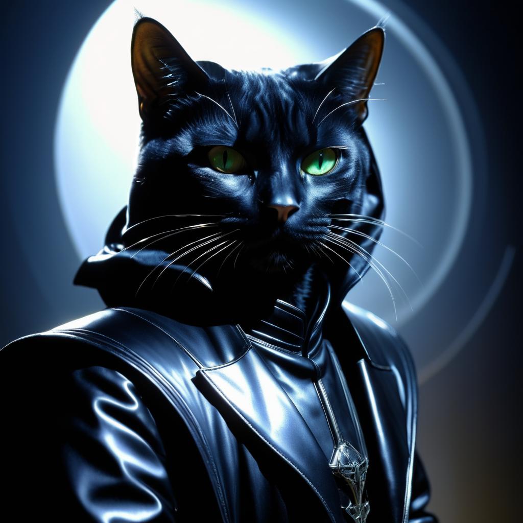 Portrait of a stealthy cat as an assassin, dramatic lighting, cinematic, ultra-realistic, styled by H.R. Giger, Moebius.